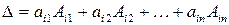 Свойство 9. Сумма произведений элементов какой-нибудь строки (столбца) определителя на алгебраические дополнения элементов другой строки (столбца) равна нулю. Рассмотрим вспомогательный определитель