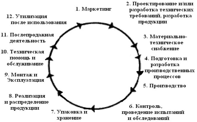 На современном этапе принята система качества (СК), установленная в международных стандартах – ИСО серии 9000. Фундаментальным понятием в учении о СК является понятие процесса жизненного цикла продукции (ЖЦП). Жизненный цикл продукции представляет собой совокупность взаимосвязанных процессов изменения состояния продукции при ее создании и использовании. Существует понятие этапа ЖЦП – условно выделяемая часть, которая характеризуется спецификой производимых на этом этапе работ и конечными результатами. Неразрывность этапов ЖЦП позволяет представить цепь этапов в виде непрерывной цепи или спирали. Эту модель раньше называли петлей качества (спиралью качества), а в версии ИСО 9000 – «процессами жизненного цикла продукции». Важнейшее требование СК – управление качеством – должно охватывать все этапы ЖЦП и может быть представлено в следующем виде (рис.2). Основой политики качества продукции или услуги является достижение высокой удовлетворенности потребителей. Показатель качества продукции – количественная характеристика одного или нескольких свойств продукции, входящих в ее качество, рассматриваемая применительно к определенным условиям ее создания и эксплуатации или потребления. Показатель качества количественно характеризует пригодность удовлетворять те или иные потребности.