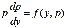 . Полагая и , получим дифференциальное уравнение первого порядка , где роль независимой переменной играет .