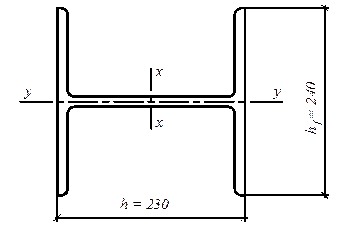 Пример 4.1. Подобрать сплошную колонну, выполненную из прокатного широкополочного колонного двутавра, высотой l = 6 м. Внизу и вверху колонна закреплена шарнирно. Расчетное продольное усилие N = 1000 кН. Материал конструкции – сталь класса С245 с расчетным сопротивлением Ry = 24 кН/см2. Коэффициент условий работы γс = 1. Сечение колонны представлено на рис. 4.2.