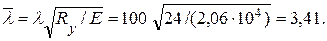 Предварительно гибкостью колонн средней длины с усилием до 2500 кН задаются в пределах λ = 100…60. Принимаем λ = 100. Условную гибкость колонны определяем по формуле