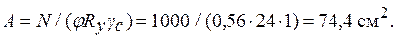 По условной гибкости для двутаврового сечения при типе кривой устойчивости ′′ в ′′ (см. табл. 3.12) определяем коэффициент устойчивости при центральном сжатии j = 0,560. Вычисляем требуемую площадь сечения: