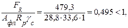 Центр швов, прикрепляющих фланец к фасонке, не совпадает с осью нижнего пояса. Эксцентриситет составил е = 80 мм. Фланец для четкости опирания выступает на 15 – 20 мм ниже фасонки опорного узла, но не более a max ≤ 1,5 tфл. Выпускаем фланец за пределы фасонки на а = 20 мм, что меньше a max = 1,5 ∙ 16 = 24 мм. Размеры опорного фланца назначаем конструктивно: толщина tфл = 16 – 20 мм; высота l = hф + a = 400 + 20 = 420 мм; ширина bфл = 180 мм (из условия размещения двух вертикальных рядов болтов). Вертикальная реакция фермы FR передается с опорного фланца через строганые поверхности на опорный столик. Площадь торца фланца Афл = bфлtфл = 18 · 1,6 = 28,8 см2. Торец фланца проверяем на смятие: