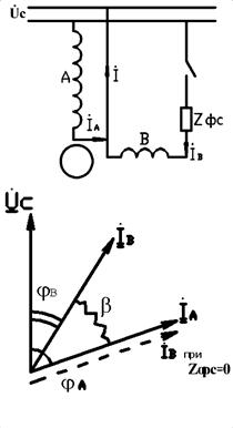 2. Индуктивное сопротивление ZФС = wL = XL.Если вместо активного сопротивления в качестве фазосдвигающего элемента использовать индуктивное, то токи I A и I B поменяются местами (рис.2.2.2). При этом