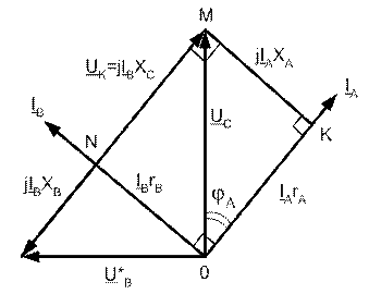 Векторная диаграмма (рис. 2.2.7): Четырёхугольник OKNM –прямоугольный, противоположные стороны равны. KM = ON OK = NM .