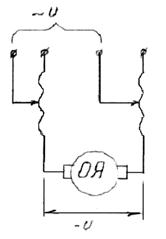 Коллекторные двигатели можно разделить на три группы-двигатели постоянного тока, двигатели переменного тока и универсальные. В настоящее время из большого разнообразия коллекторных двигателей переменного тока в схемах автоматики в основном применяются однофазные коллекторные микродвигатели с последовательным возбуждением. Кроме коллекторных двигателей переменного тока выпускается большое количество универсальных коллекторных двигателей, способных работать как от сетей постоянного, так и от сетей переменного тока. Принципиальная схема двигателя показана на рисунке 5.1