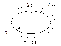 Пусть газ массой М, объемом V заключен (рис. 2.1) в эластичную оболочку с поверхностью f и находится под давлением р. При подводе к газу теплоты dQ он расширится (каждая точка оболочки переместится на расстояние dx) и совершит работу , Дж. Поскольку , м3, то .