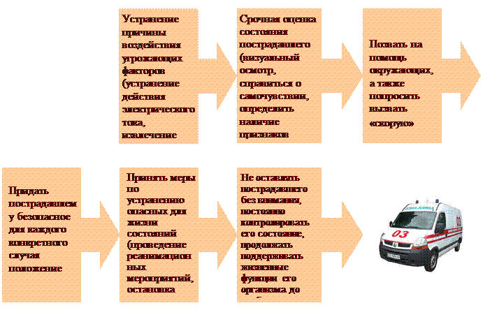 Алгоритм действий по спасению жизни и сохранению здоровья пострадавшего