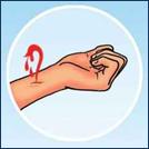 Однако при сильном кровотечении следует наложить выше раны жгут или закрутку из подручных материалов (ремень, носовой платок, косынка). Жгут накладывается следующим образом. Часть конечности, где будет лежать жгут, обертывают полотенцем или несколькими слоями бинта (подкладка). Затем поврежденную конечность приподнимают, жгут растягивают, делают 2 – 3 оборота вокруг конечности, чтобы несколько сдавить мягкие ткани, и закрепляют концы жгута с помощью цепочки и крючка или завязывают узлом. Правильность наложения жгута проверяется прекращением кровотечений из раны и исчезновением пульса на периферии конечности. Затягивайте жгут до остановки кровотечения. Через каждые 20-30 минут расслабляйте жгут на несколько секунд, чтобы стекла кровь и затягивайте снова. Всего можно держать затянутый жгут не более 1,5–2 часов. При этом раненую конечность следует держать приподнятой. Чтобы контролировать длительность наложения жгута, своевременно его снять или произвести ослабление, под жгут или к одежде пострадавшего прикрепляют записку с указанием даты и времени (час и минуты) наложения жгута.