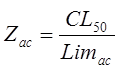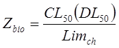 Інший показник - величина зони біологічної дії, що визначається відношенням однократних половинно-смертельних концентрацій (доз) до граничного в хронічному експерименті: