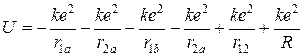 Потенциальная энергия такой системы, состоящей из двух протонов и двух электронов, равна
