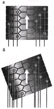 Особенности применения шиповНекоторые зимние шины выпускаются уже с отверстиями для постановки шипов определенного размера и количества. При этом необходимо ставить сразу же полный комплект шипов на новую шину. В случае эксплуатации таких шин (до постановки шипов) отверстия под шипы будут разрушены песком и грязью. Частичное шипование нецелесообразно и даже быстрее разрушает шину, так как в этом случае на каждый шип приходится чрезмерно большая нагрузка, «выдирающая» его из посадочного отверстия. К тому же меньшее количество шипов не обеспечивает требуемых сцепных качеств шины при движении. При сверлении отверстий под шипы необходимо пользоваться высоко-оборотистой (15-20 тыс. об/мин) дрелью или сверлильным станком, а также работать спиральным сверлом с небольшим шагом. Неподходящее сверло и малая скорость резания повреждают края отверстия и создают микротрещины, что приводит к преждевременному выпадению шипов из гнезда. Для шипов типа Р8 и Р9 диаметр отверстия в протекторе шины должен быть 3,5 мм, а глубина - обеспечивать выступание шипа над протектором в пределах 1,0-1,5 мм. Остаточная толщина протектора между нижним фланцем шипа и брокером должна быть не менее 2 мм.