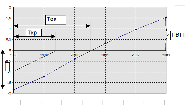 Тобто, замість того, щоб задавати ставку дисконту – d, треба задати Т та відшукати IRR. Аналітично таке порівняння вирішується методом підбору IRR.