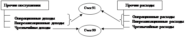 В соответствии с положением по бухгалтерскому учету «Доходы организации» ПБУ 9/99 (утверждено приказом Минфина РФ от 6 мая года № 32н) и «Расходы организации» ПБУ 10/99 (утверждено приказом Минфина РФ от 6 мая 1000 года № 33н) все доходы и расходы организации подразделяются на: - доходы (расходы) по обычным видам деятельности; - операционные доходы (расходы); - внереализационные доходы (расходы); - чрезвычайные доходы (расходы); C учетом этого в разделе VIII «Финансовые результаты» плана счетов включены активно-пассивные сопоставляющие счета: - 90 «Продажи» – для обобщения информации о доходах и расходах, связанных с обычными видами деятельности; - 91 «Прочие доходы и расходы» – для обобщения информации об операционных и внереализационных доходах (расходах) организации. Чрезвычайные доходы (расходы) отражаются на активно-пассивном финансово-результатном счете 99 «Прибыли и убытки». Сопоставляются счета 90 и 91 служат для определения результатов финансово-хозяйственной деятельности организации, на которых ежемесячно путем сопоставления дебетовых и кредитовых оборотов по соответствующим субсчетам определяется разница между оборотами, представляющая собой финансовый результат (прибыль или убыток) от продаж и прочих доходов и расходов. Финансовый результат по окончании каждого месяца с указанных счетов списывается на счет 99 «Прибыль и убытки» Таким образом, в рамках счетов 90,91 и 99 ведется систематическое наблюдение за процессом формирования финансового результата деятельности организации в течение отчетного периода, что представляет собой информацию большой важности и значимости. Для изучения данной темы учебным планом отводиться 4 часа, в том числе лекция и 2-х часовое практическое занятие.