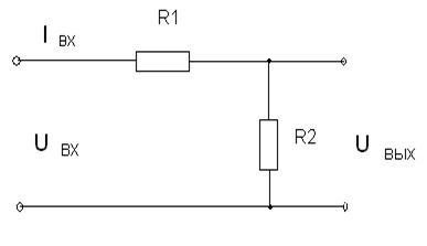 Рисунок 2 - Делитель напряжения R1 – верхнее плечо делителя; R2 – нижнее плечо. Последовательное соединение резисторов R1, R2 преобразует входное напряжение Uвх в ток: