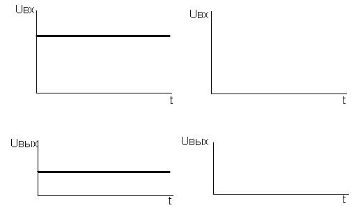 Рисунок 4– Эпюры входного и выходного напряжений делителя: а) – на постоянном токе; б) – на переменном токе