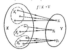 4.5. Разбиение и отображение. Разбиение множества на классы можно связать с отображением f: Х ® У, ставящим каждому элементу из Х в соответствие один и только один элемент из У (рис. 4.2).