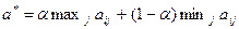 , де — коефіцієнт оптимізму, =1..0 (при =1 альтернатива вибирається за правилом максімакс, при =0 — за правилом максімін).
