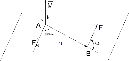 Свойство 1. Вектор-момент M пары по модулю и направлению равен векторному произведению радиуса вектора АВ на ту из сил этой пары, к началу которой направлен радиус-вектор АВ, то есть