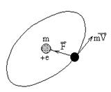 В 1905 г. Дж. Томсоном была предложена первая модель атома. Согласно этой модели атом представляет собой шар с равномерно распределенным положительным зарядом, внутри которого около своих положений равновесия колеблются электроны. В 1911 г. Резерфорд, бомбардируя a -частицами ( При движении электрона вокруг ядра по круговой орбите радиуса r кулоновская сила взаимодействия сообщает ему центростремительное ускорение. Тогда второй закон Ньютона примет вид