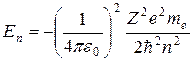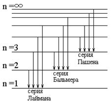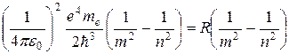 где n называется главным квантовым числом и определяет энергетические уровни атома. Энергетическое состояние с n = 1 является основным, с n > 1 возбужденным. Частота спектральной линии при переходе атома из состояния с энергией n в состояние с энергией m определяется (Z = 1):