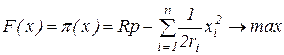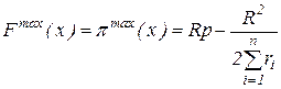 Оптимальный план распределения заказа с точки зрения центра для i -го агента прямо пропорционален имеющемуся ресурсу R и отношению эффективности i -го агента к сумме эффективностей всех агентов. Для нахождения максимального значения целевой функции подставим оптимальный план (2.7) в выражение для целевой функции (2.1):