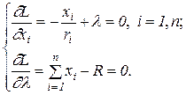 Используем для решения данной задачи метод множителей Лагранжа. Запишем функцию Лагранжа как сумму целевой функции (2.1) и ограничения (2.3), умноженного на множитель Лагранжа:
