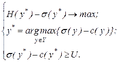 С экономической точки зрения затраты агента можно интерпретировать как денежный эквивалент тех усилий, которые агент должен произвести для достижения действия у. Для центра целевой функцией является разность между доходом и затратами на стимулирование агента: