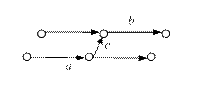Рис.13.2 3) если следует учесть зависимость событий, не связанных реальными работами (различные работы a и b выполняются на одном оборудовании), то вводится фиктивная работа с (рис.13.3);
