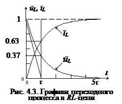 На рис. 4.3 изображены графики зависимостей нормированных значений тока īL = iL / (E 0/ R) и напряжения ūL = uL/E 0 в RL- цепи.
