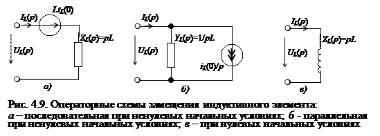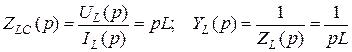 При нулевых начальных условиях (uC (0) = 0) уравнения (4.45) и (4.46) преобразуются в выражения UL (p) = pLIL (p); IL (p) = UL (p)/(pL), откуда можно найти операторные сопротивление и проводимость емкости: