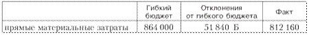 Пример3 Бюджетом компании «Восток» предусмотрены прямые материальные затраты, размер которых основан на прогнозе годового уровня инфляции 20%. Фактически инфляция составила лишь 12% годовых. Этой величине соответствовал и темп роста цен на сырье для производства. До поправки на учет инфляции сравнение данных гибкого бюджета с фактическими показателями выглядело так (руб.):