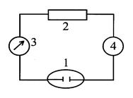 раствор и, следовательно, за то же время, то же количество электричества. В кулонометре со 100%-м выходом протекает хорошо известная электрохимическая реакция, и измерение Q х сводится к определению Q ст., полученного в результате этого процесса. В зависимости от способа измерения объема, массы вещества различают электрогравиметрические титрационные и другие кулонометры. В газовых кулонометрах определяется масса газа, выделившегося в результате электрохимического процесса. В электрогравиметрических - масса вещества; напри мер, масса меди, выделившейся при электролизе CuSO4 в медных куло нометрах, масса Ag при электролизе AgNO3в серебряных кулонометрах. При проведении кулонометрического титрования используют уста-новку, включающую ячейку 1, источник постоянного тока (гальваностат) 2, амперметр 3. Время электролиза могут измерять включенным в схему электрохронометром 4 или секундомером (рис. 2.12.2).