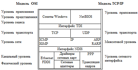 Набор многоуровневых протоколов, или как называют стек TCP/IP, предназначен для использования в различных вариантах сетевого окружения. Стек TCP/IP с точки зрения системной архитектуры соответствует эталонной модели OSI (Open Systems Interconnection – взаимодействие открытых систем) и позволяет обмениваться данными по сети приложениям и службам, работающим практически на любой платформе, включая Unix, Windows, Macintosh и другие.