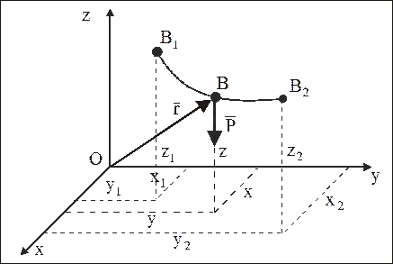 · Работа силы тяжести МТ при ее любом перемещении из одного положения в другое. Выберем систему координат с осью Оz, направленной по вертикали вверх (рис. 13).