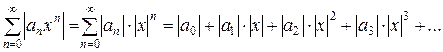 также является степенным рядом. Это – степенной ряд, расположенный по степеням двучлена (x-a). Еще такой ряд называют обобщенным степенным рядом. Начнем с того, что найдем область сходимости степенного ряда (1). Для этого проанализируем положительный числовой ряд, составленный из его модулей: