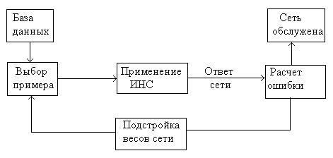 Рис.6. Алгоритм обучения ИНС. Нейронные сети хороши для задач распознавания образов, но неудобны для выяснения вопроса, как они такое распознавание осуществляют. При этом знания эксперта для ускорения процесса ее обучения в нейронную сеть ввести невозможно. Системы с нечеткой логикой, напротив, хороши для объяснения получаемых с их помощью выводов, но они не могут автоматически приобретать знания для их использования в механизмах вывода. В гибридных сетях выводы делаются на основе аппарата нечеткой логики, но соответствующие функции принадлежности подстраиваются с использованием алгоритмов обучения нейронных сетей. Основными недостатками аппарата нейронных сетей являются: - отсутствие строгой теории по выбору структуры ИНС; - практическая невозможность извлечения приобретенных знаний из обученных ИНС. Опыт показал, что применение нейронных сетей оправданно там, где закономерности не изучены, а входные данные избыточны, иногда противоречивы и засорены случайной информацией. За рубежом интерес к нейронным сетям стремительно растет. На нейронной технологии в сочетании с использованием проводящих полимеров основано устройство распознавания запахов, разработанное совместно фирмами Neotronics и Neoral Technologies. Системы на основе одного из типов нейронной сети осуществляют контроль за энергоустановками в некоторых городах США. Сеть РАРNЕТ после пробного рассмотрения нескольких тысяч образцов определяет пораженные раком клетки быстрее и точнее, чем это делает лаборант. "Гибридная" система анализа данных Clementine, разработанная ISL, применяется банком Чейз Манхэттен (Chase Manhattan Bank) для изучения вкусов и склонностей части своей клиентуры. Датский институт мясной промышленности приспособил нейронную сеть для анализа качества свинины. Фирма АЕА Technology разработала на основе нейронной сети средство определения идентичности подписи. Области применения обученных ИНС: обработка видеоизображений; обработка статических изображений; обнаружение и классификация объектов по звуковым и гидроакустическим сигналам; медицинская диагностика; распознавание речи; обнаружение фальсификаций; управление ценами и производством; исследование факторов спроса; прогнозирование потребления энергии; анализ страховых рисков; оценка недвижимости. Задачи нейронных сетей, генетических алгоритмов и методов нечеткой логики могут рассматриваться вне связи между собой, однако их взаимосвязь довольно высока. Генетические алгоритмы можно применять для подбора весов и топологии ИНС, а также для формирования базы правил и функций принадлежности нечеткой системы. В свою очередь, ИНС позволяют выбирать соответствующие параметры для генетических алгоритмов (параметры скрещивания и мутации). Методы нечетких множеств позволяют подбирать параметры генетических алгоритмов и коэффициенты, определяющие скорость обучения ИНС.