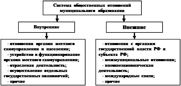 Схема 1. Схема 1 позволяет выделить основные субъекты муниципального права. Напомним: теория государства и права определяет в качестве субъекта права лицо (физическое или юридическое), обладающее по закону способностью осуществлять права и юридические обязанности (то есть правосубъектностью). В муниципальном праве таковыми являются: - граждане; - население муниципального образования; - представительные и исполнительно-распорядительные органы местного самоуправления; - муниципальные образования как самостоятельный субъект правового регулирования; - должностные лица органов местного самоуправления; - субъекты экономической, хозяйственной деятельности или их подразделения, функционирующие на территории муниципального образования; - органы государственной власти субъекта Федерации; - органы государственной власти Российской Федерации; - региональные и общероссийские объединения муниципальных образований; - международные организации. Более подробно правосубъектность перечисленных выше субъектов муниципального права мы будем исследовать в последующих разделах курса. Здесь же отметим: основной объём работы по обеспечению и защите прав граждан, конкретной хозяйственной, экономической, образовательной, культурно-просветительной, природоохранной и иной деятельности государства решается не на государственном, а прежде всего на муниципальном уровне. Именно здесь реализуются права и свободы рядового гражданина, происходит удовлетворение основных его жизненных потребностей. Именно здесь, на территории муниципальных образований, осуществляется вся экономическая и хозяйственная деятельность. Здесь же, к сожалению, совершаются и все правонарушения и преступления. Отмечая особую роль местного самоуправления как власти, непосредственно приближённой к рядовому гражданину, недопустимо принижать при этом и роль государства. Именно государство, оценивая вытекающие из жизненной практики потребности существования и развития местного самоуправления, формулирует фундаментальные принципы государственной политики в отношении местного самоуправления, те общеобязательные правила, которые ставят все муниципальные образования в равное перед законом положение. Признавая и гарантируя местное самоуправление, государство всей своей мощью защищает его от какого бы то ни было произвола. Каким образом? – Вырабатывая и устанавливая соответствующий метод правового регулирования. Многообразие и разноплановость внутримуниципальных общественных отношений и отношений муниципального образования с внешним миром, их взаимная связь и взаимообусловленность предопределяет необходимость и потребность в правовом урегулировании этих отношений. Так возникает муниципальное право. И не только возникает, но и развивается, отражая динамику общего развития муниципальных отношений в стране и в мире. Муниципальное право, таким образом, вполне обоснованно выделилось в самостоятельную отрасль права. Отражая многообразие соответствующих общественных отношений, эта отрасль имеет комплексный, междисциплинарный характер. В процессе своего совершенствования муниципальное право по необходимости взаимодействует, оказывает влияние на иные отрасли современного российского права: гражданское право и гражданский процесс, административно