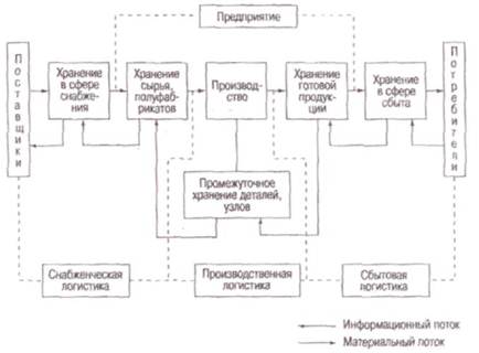 Рис. 1.5. Логистическая цепь В процессе обследования и анализа выявляются мощность, структура и распределение во времени материальных и информационных потоков, прежде всего, в пунктах отправления, назначения и перегрузки груза с одного вида транспорта на другой. Оценивается уровень взаимодействия и кооперации элементов производственно транспортной системы при формировании материальных потоков, существующая структура и объемы перегрузочных транспортно-складских операций на отдельных ступенях обслуживания материальных потоков. В итоге статистического анализа проверяется соответствие мощности технических средств системы потребной перерабатывающей способности. Предметом анализа являются существующая технология и организационная структура управления элементов производственно-транспортной системы, в результате определяются слабые места в технологической цепи и в ее информационном обеспечении. В процессе анализа изучается существующая система сервиса участков ЛЦ производителей и потребителей готовой продукции, выявляются его недостатки; устанавливается характер взаимодействия субъектов ЛЦ с рынком, их роль и место в сфере маркетинга. В конечном итоге составляется техническая характеристика системы. На втором этапе осуществляется разработка проектных схем материальных потоков на полигоне макросистемы и для регионов локальных транспортных объектов; построение в обобщенном виде технической и технологической структуры ЛИ. В границах этой структуры обозначаются пункты обслуживания материальных и информационных потоков, вероятные места установки технических средств терминальных устройств для приема, передачи и переработки информации и отслеживания движения материальных потоков. На третьем этапе на основе изучения и анализа существующей системы материальных потоков, индентификации "узких" мест и барьеров на пути их движения, осуществляется разработка прогрессивных организационных и технико-технологических схем их обслуживания в пунктах производства и потребления продукции и на стыках различных видов транспорта. С этой целью строят контактные графики, на которых согласовывается подача транспортных средств с технологическим процессом предприятия, добывающего сырьё, выпускающего или потребляющего готовую продукцию. В результате анализа графиков совместной работы рассчитывают денежные и натуральные показатели, характеризующие эффективность логистической технологии, уровни запасов сырья, полуфабрикатов и готовой продукции, простой транспортных средств при выполнении перегрузочных операций, сроки доставки грузов, оптимальные транспортные партии грузов и др. На четвертом этапе производится разработка аналитических имитационных (компьютерных) моделей для всей ЛЦ и отдельных ее элементов. При анализе моделей проигрываются возможные конфликтные ситуации, определяются тупиковые состояния, которые возникают при обслуживании материального потока в производственно-транспортной системе, выявляются условия устойчивости ее функционирования и мероприятия для ввода в стационарный режим. На пятом этапе выполняется обоснование технико-экономических требований к техническим средствам ЛП, обеспечивающим ее надежное функционирование, к перерабатывающей способности грузовых станций, складо
