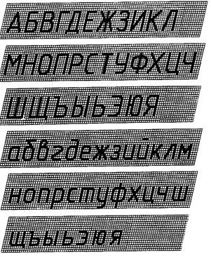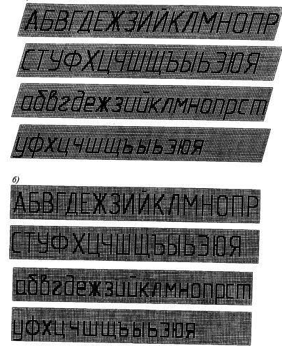 Рис. 5. Чертежные шрифты, применяемые для нанесения всех надписей на чертежах и других технических документах, установлены ГОСТ 2.301-81. Чертежный шрифт содержит русский, латинский и греческий алфавиты, арабские и римские цифры, а также знаки. Размер шрифта h определяется высотой прописных букв, мм: 2,5; 3,5; 5; 7; 10; 14; 20; 28; 40. Типы шрифтов: тип А без наклона (толщина линий шрифта d=1/14 h); тип А с наклоном около 75o (d =1/14 h); тип Б без наклона (d =1/10 h); тип Б с наклоном около 75o (d =1/10 h). Построение шрифта русского алфавита во вспомогательной сетке показано на рис. 6 (тип А) и рис.7 (тип Б).