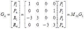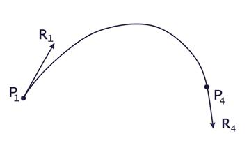 Одним из способов задания параметрического кубического сплайна является указание координат начальной и конечной точек, а также векторов касательных в них. Такой способ задания называется формой Эрмита. Обозначим концевые точки Будем решать задачу нахождения четверки коэффициентов