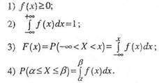 Плотность распределения существует только для непрерывных случайных величин и имеет следующие основные свойства: