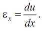 Рассмотрим стержень, находящийся под действием растягивающей нагрузки. Выделим (до деформации) два произвольных сечения стержня А–А и B–B, отстоящие друг от друга на расстоянии dx. От приложенной нагрузки сечение А–А переместиться в положение А1–А1 на расстояние u, а сечение B–B – в положение B1–B1 на расстояние u+du (du – бесконечно малая величина). Следовательно, абсолютное удлинение отрезка dx равно разности его размеров до и после деформации Относительная продольная деформация точек сечения A–A стержня при растяжении