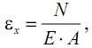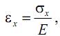 Для линейно-упругого материала относительная деформация при растяжении связана с нормальными напряжениями по закону Гука: