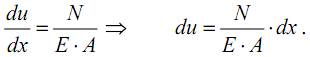 здесь Е – модуль нормальной упругости (модуль Юнга), постоянный коэффициент, который является конста нтой материала (например, для стали Е=2·1011Па, для меди Е=1·1011Па, для титана Е=1,2·1011Па). Исходя из этих формул, можно записать выражение для перемещений точек растягиваемого стержня в рассматриваемом сечении