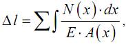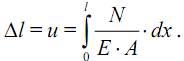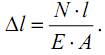 При постоянстве величин N, А, E вдоль оси стержня, абсолютное удлинение можно найти так: