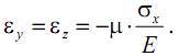 Коэффициент Пуассона – безразмерная величина. Так как продольная и поперечная деформация для большинства конструкционных материалов имеют противоположные знаки, можем записать