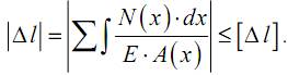 где ∆l – изменение размеров детали; [∆l] – допускаемая величина этого изменения. Учитывая, что при растяжении (сжатии) абсолютное удлинение в общем виде определяется как алгебраическая сумма величин ∆l по участкам