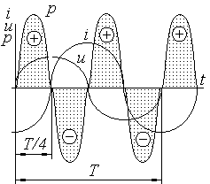 Но и первое и второе выражения равны нулю, т.е. среднее значение мощности за период равно нулю. Из общего выражения для мгновенной мощности: