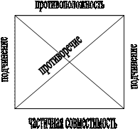 Простые сравнимые суждения, имеющие одинаковые термины и различающиеся по качеству и количеству, находятся в определенных отношениях, которые иллюстрируются с помощью логической схемы – логического квадрата [11].